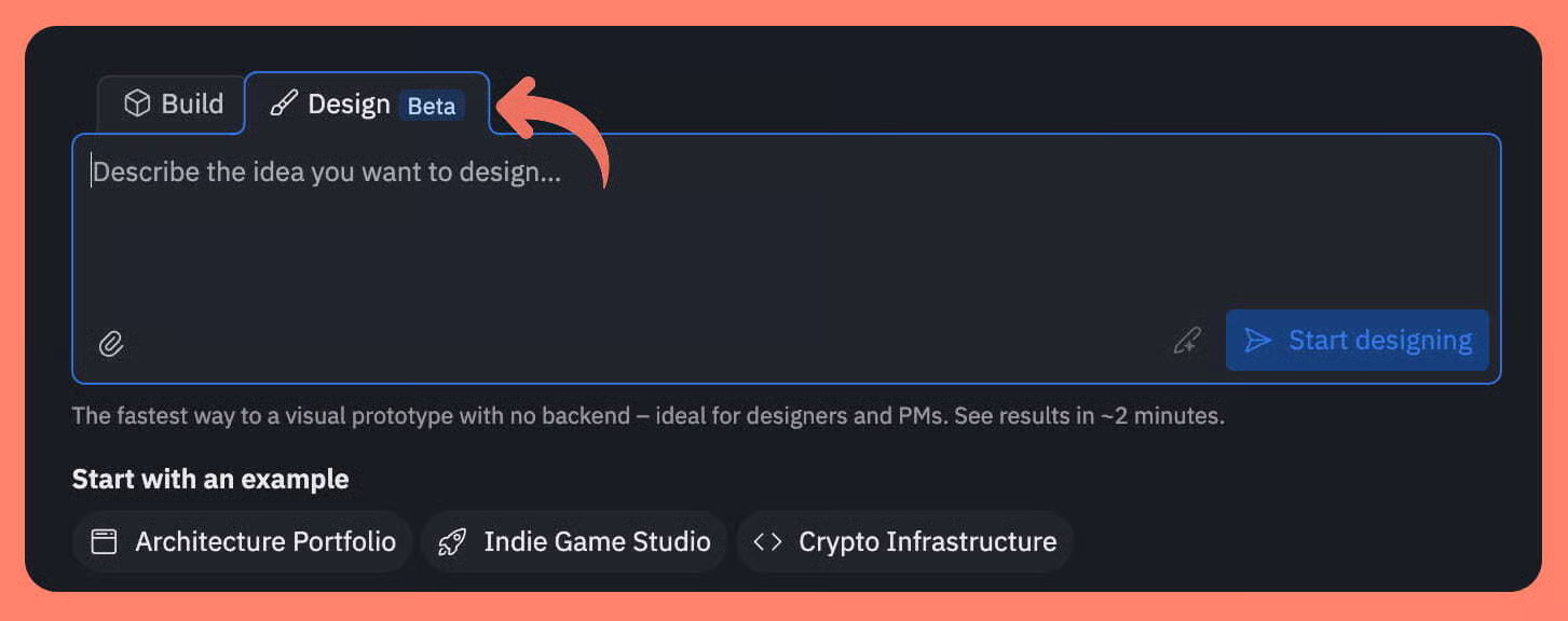 1ļøā£ Start Inside Replit: Sign up on Replit and navigate to Home ā Design. This is the workspace where you describe the UI you want the agent to build. It handles layout, structure, spacing, and visual hierarchy for you.