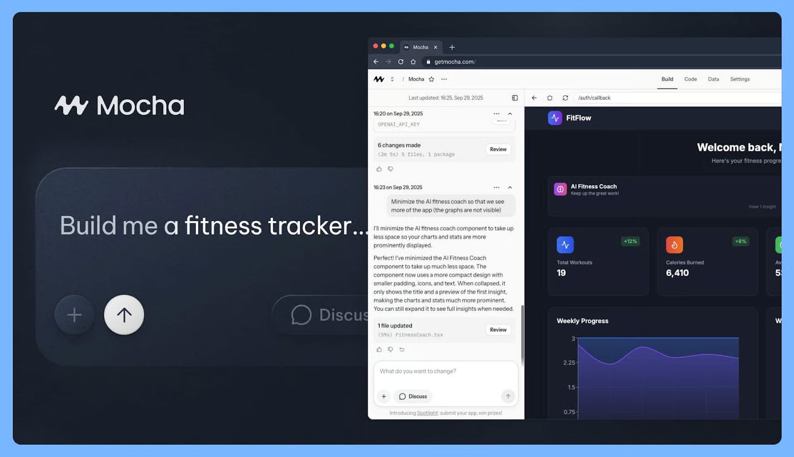Mocha turns app creation into a simple conversation. You describe what you want, refine it in real time, and launch a polished app within minutes. For entrepreneurs, creators, or small teams, it is the fastest way to bring an idea to life.