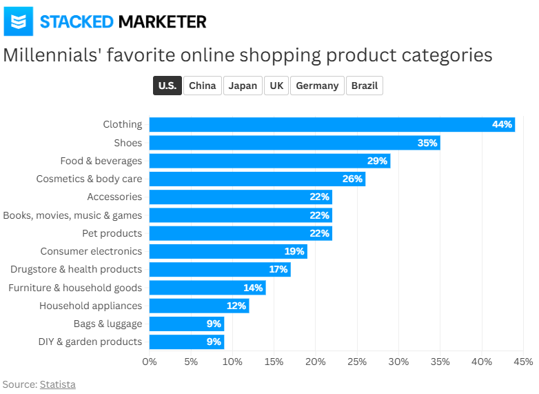 4️⃣ Larger Purchases Are Less Frequent: Furniture (14 percent) and appliances (12 percent) are purchased online less often, with many millennials preferring in-store experiences for these bigger-ticket items.