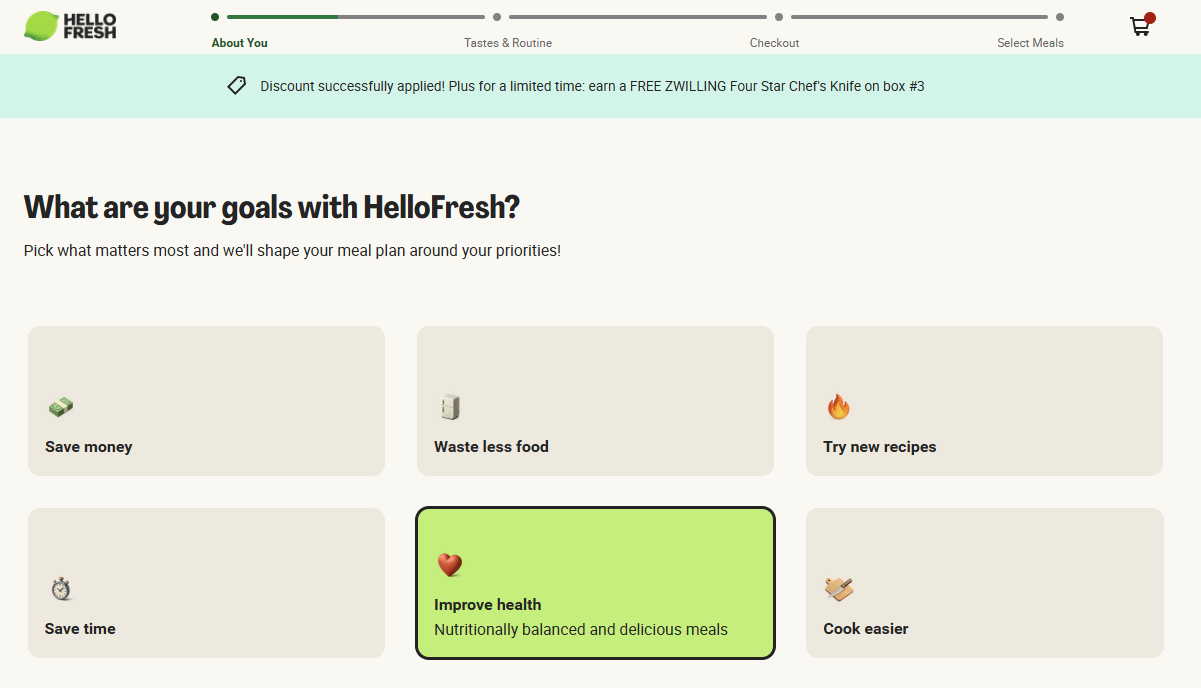 3️⃣ Use Micro Investments Early: Get users to take small actions before asking for commitment. HelloFresh does this well by making users pick meals and customize boxes before showing pricing, so by checkout, users feel too invested to abandon.