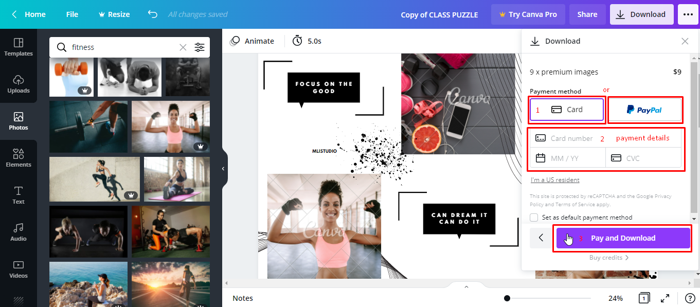 4️⃣ Build Progress Before Paywalls: Let users create something valuable before asking them to pay. Canva allows users to design fully with premium elements, but only asks for payment at download, making users feel that switching tools would waste their effort.