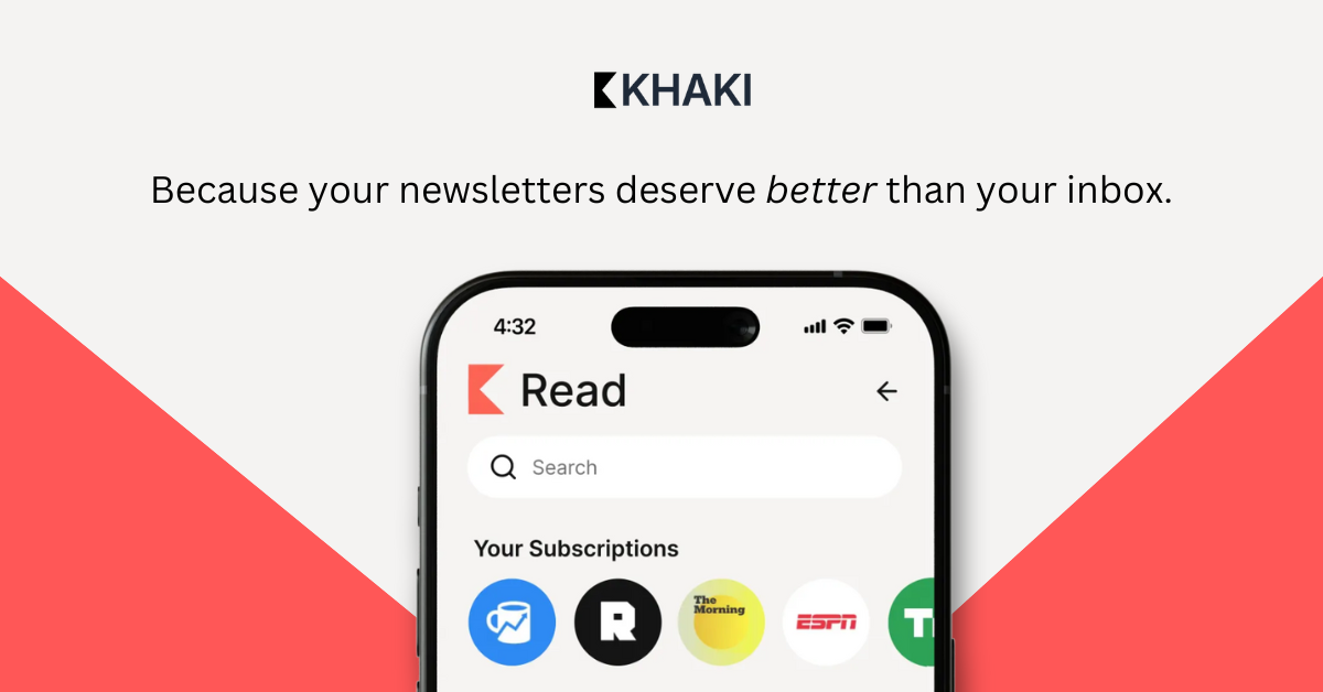 Recently, we were introduced to Khaki, a free app that solves for this. It strips away all the unnecessary content and features, so you can enjoy reading the content you’re subscribed to without distractions, to create the ultimate reading experience.