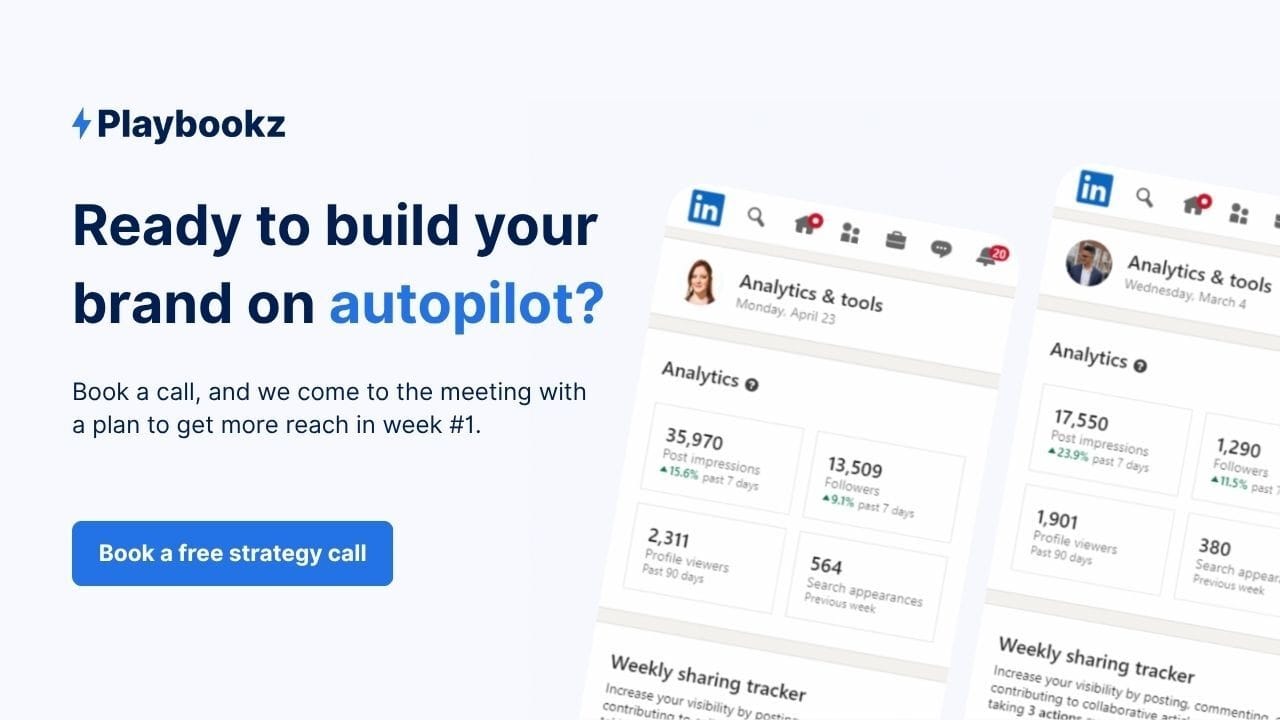 Playbookz flips that script. In just 60 minutes a month, you get ghostwritten LinkedIn content that works done for you, on autopilot, and guarantees 20k+ reach in 28 days or you donāt pay.