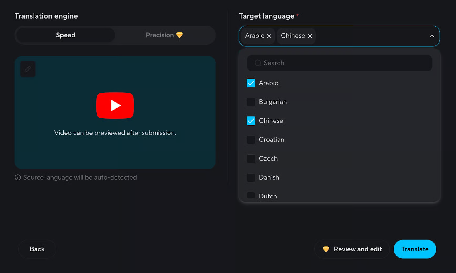 4️⃣ Select Your Target Language:Choose the language for the specific market you want to enter. Keep default settings for natural voice sync and pacing.