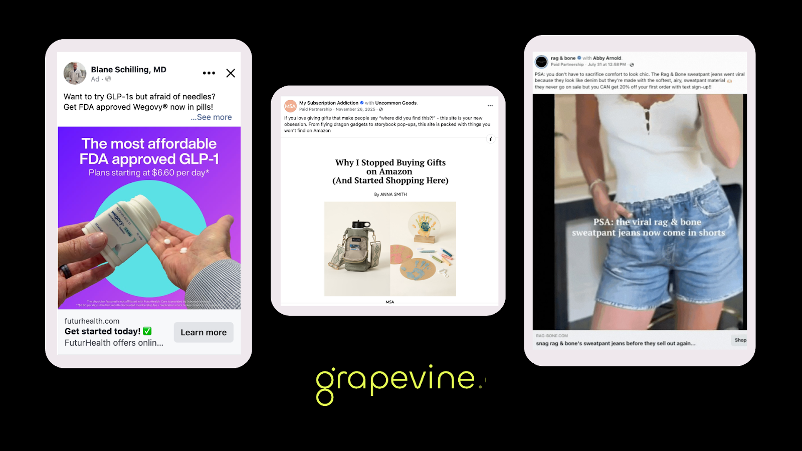 That's where Grapevine comes in. The UGC performance engine built to make creator and publisher whitelisting work on demand.