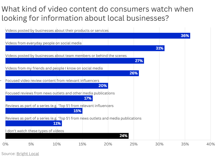 1️⃣ Your Own Videos Matter Most: 36% of consumers watch videos posted directly by businesses to gather information about products and services. This makes your brand channel a primary trust builder, not just a content hub.